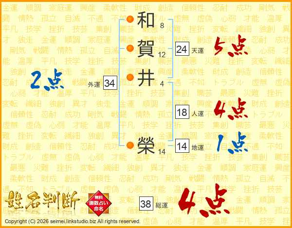 和賀井榮さんの総運は38画の4点!