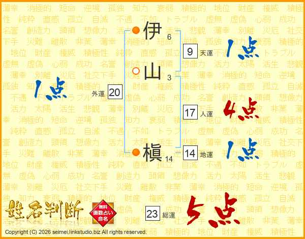 伊山槇さんの総運は23画の5点!