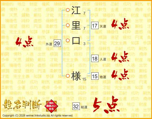 江里口様さんの総運は32画の5点!