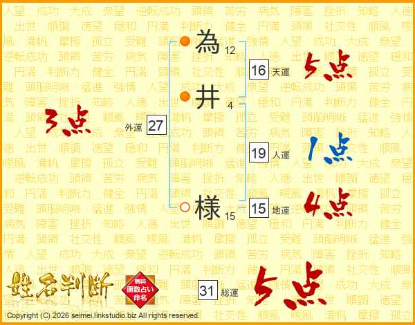 為井様さんの総運は31画の5点!