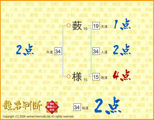 薮様さんの総運は34画の2点!