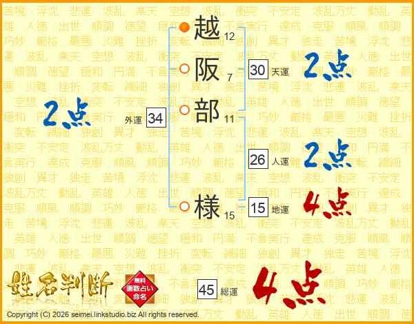 越阪部様さんの総運は45画の4点!