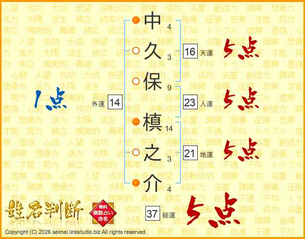 中久保槙之介さんの総運は37画の5点!