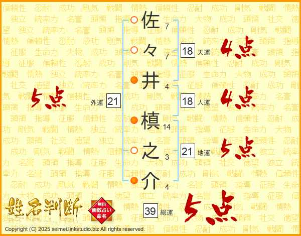 佐々井槙之介さんの総運は39画の5点!
