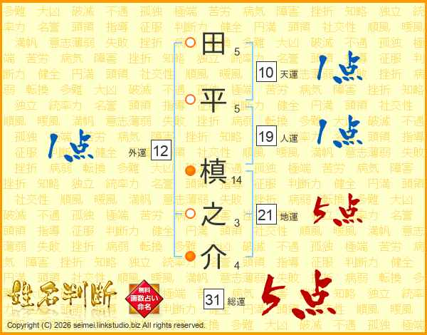 田(5画)平(5画) 槙(14画)之(3画)介(4画)