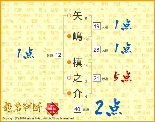 矢嶋槙之介さんの地運は21画の5点!