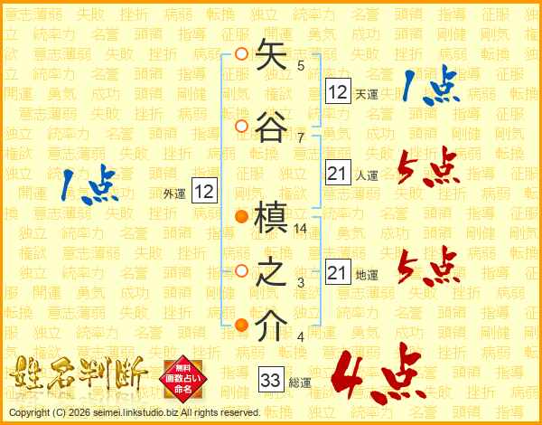 矢谷槙之介さんの総運は33画の4点!