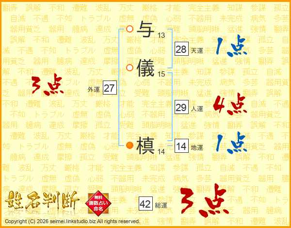 与儀槙さんの地運は14画の1点!