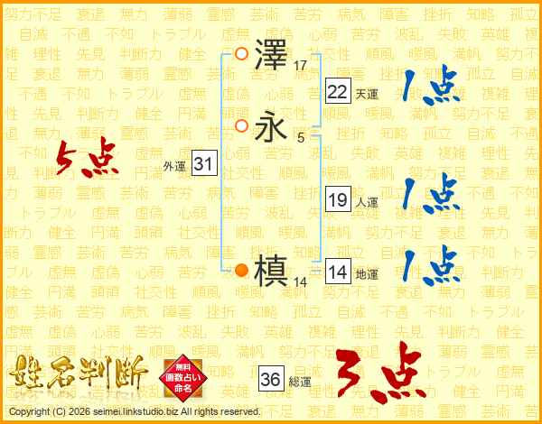 澤永槙さんの外運は31画の5点!