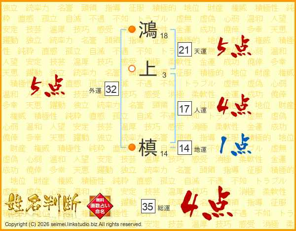 鴻上槙さんの総運は35画の4点!