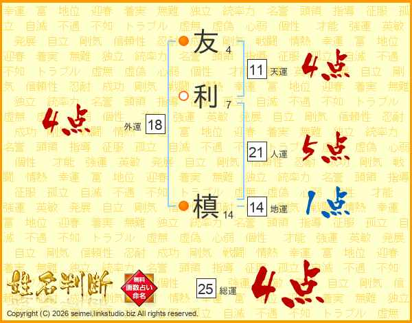 友(4画)利(7画)  槙(14画)