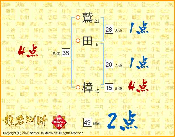 鷲田樟さんの外運は38画の4点!