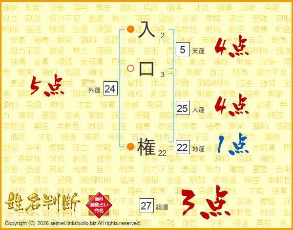 入口権さんの総運は27画の3点!