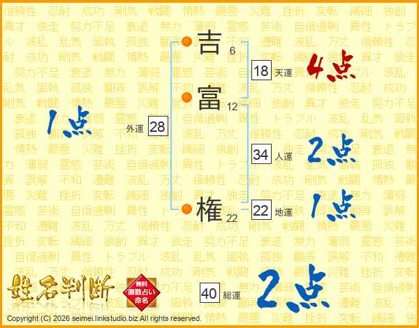 吉富権さんの総運は40画の2点!