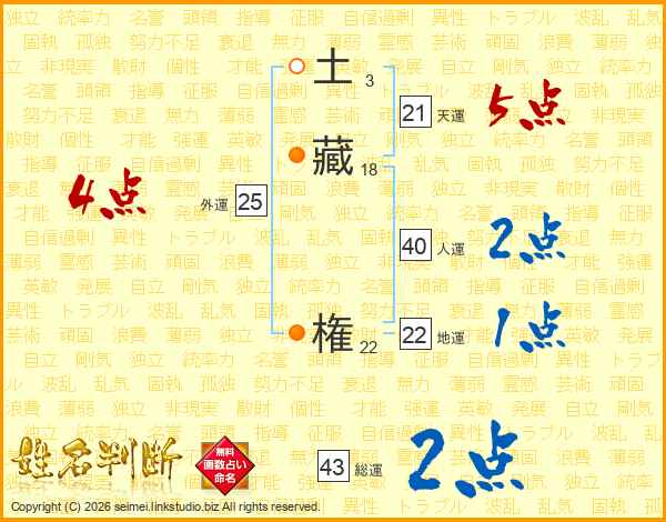 土藏権さんの総運は43画の2点!