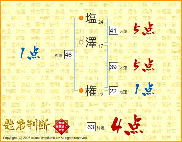 塩澤権さんの総運は63画の4点!