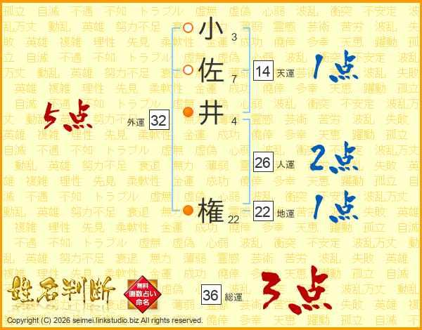 小佐井権さんの総運は36画の3点!