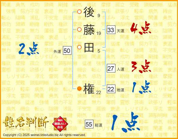 後藤田権さんの天運は33画の4点!
