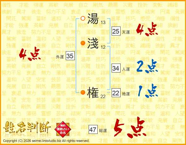 湯淺権さんの天運は25画の4点!