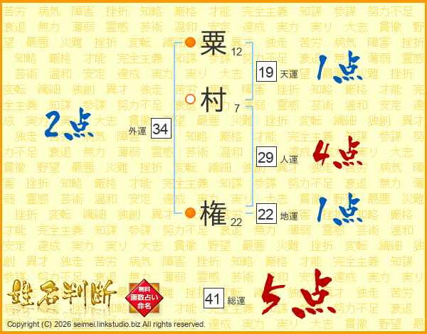 粟村権さんの人運は29画の4点!