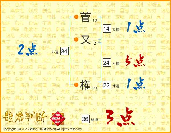 菅又権さんの総運は36画の3点!