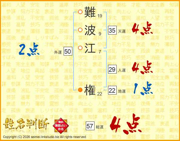 難波江権さんの総運は57画の4点!