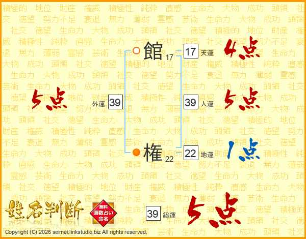 館権さんの総運は39画の5点!