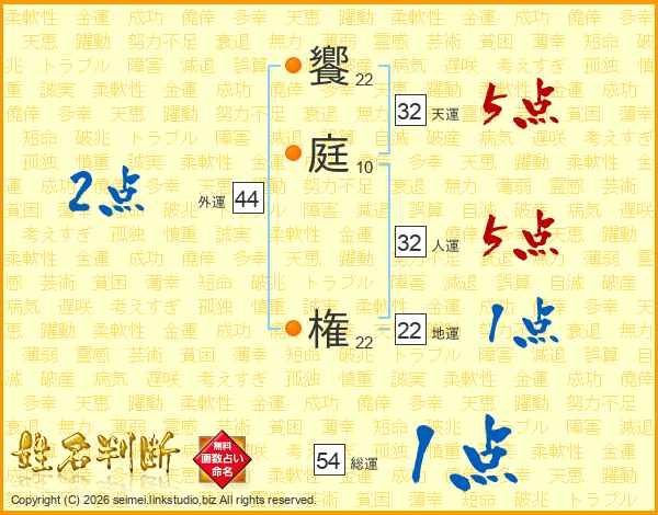饗庭権さんの天運は32画の5点!