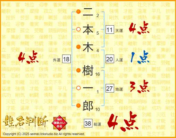 二(2画)本(5画)木(4画) 樹(16画)一(1画)郎(10画)