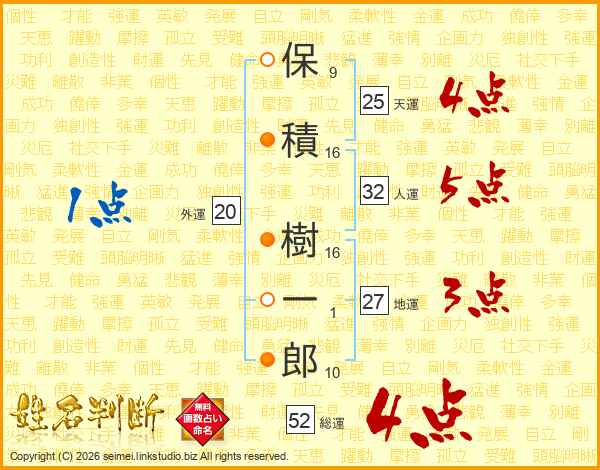 保積樹一郎さんの総運は52画の4点!