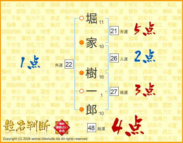 堀家樹一郎さんの総運は48画の4点!