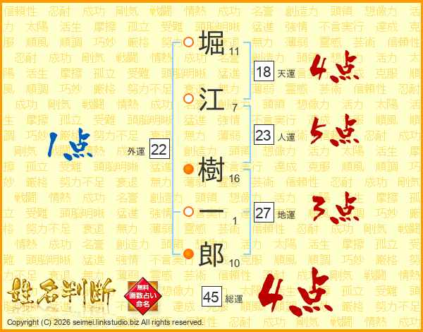 堀江樹一郎さんの総運は45画の4点!
