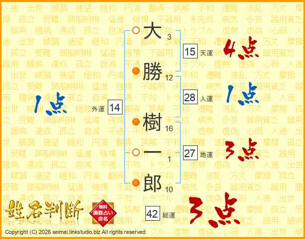 大勝樹一郎さんの総運は42画の3点!