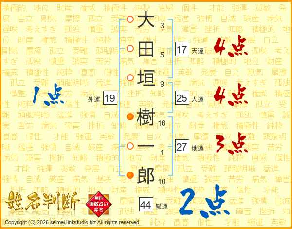 大田垣樹一郎さんの総運は44画の2点!