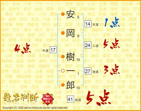 安岡樹一郎さんの総運は41画の5点!