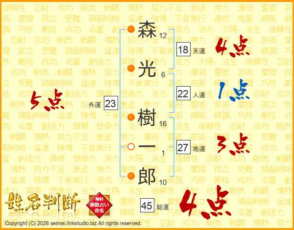 森光樹一郎さんの総運は45画の4点!
