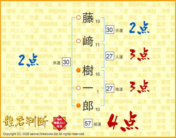 藤﨑樹一郎さんの総運は57画の4点!