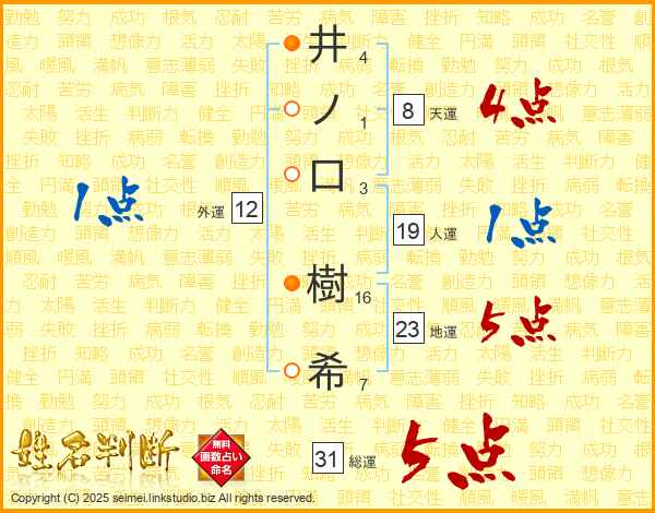 井ノ口樹希さんの総運は31画の5点!