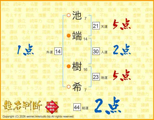 池端樹希さんの総運は44画の2点!