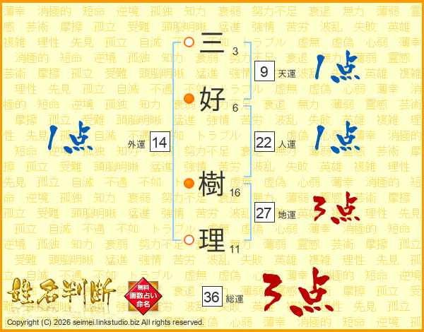 三好樹理さんの総運は36画の3点!