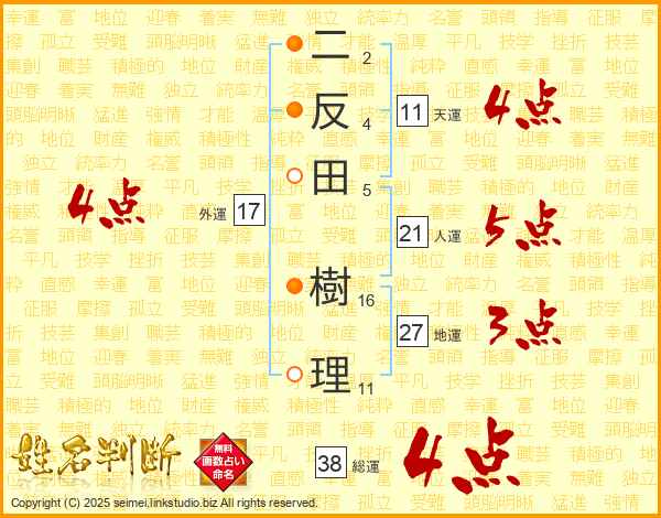 二反田樹理さんの総運は38画の4点!