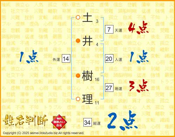 土(3画)井(4画) 樹(16画)理(11画)