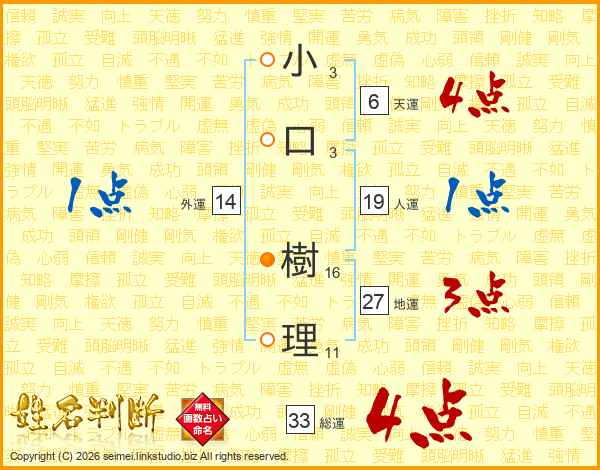 小口樹理さんの総運は33画の4点!