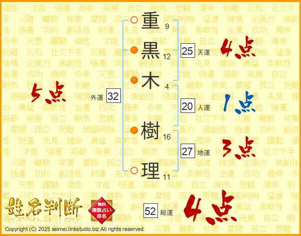 重黒木樹理さんの総運は52画の4点!
