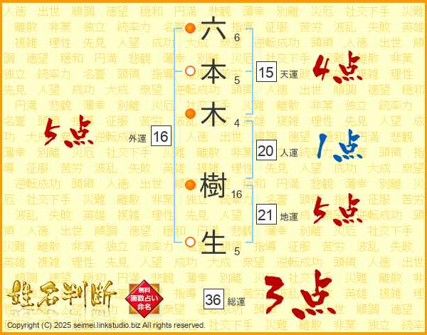 六(6画)本(5画)木(4画) 樹(16画)生(5画)