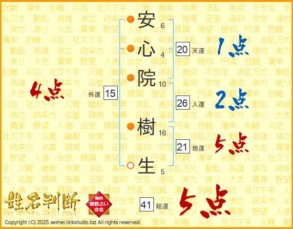 安心院樹生さんの総運は41画の5点!