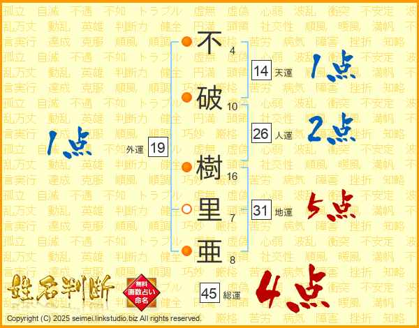 不破樹里亜さんの総運は45画の4点!