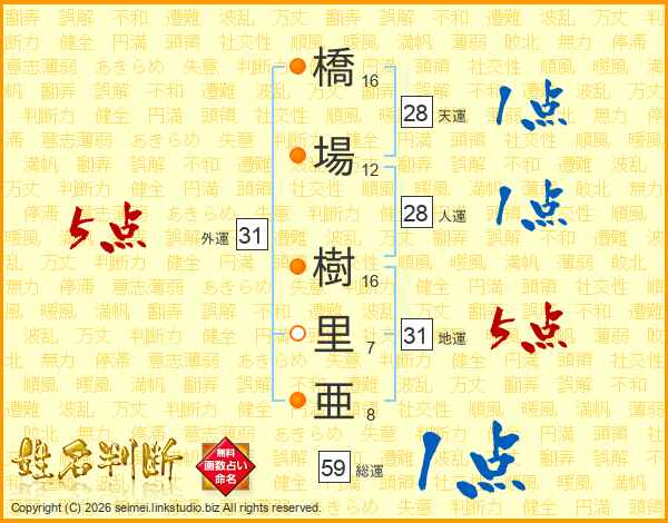 橋場樹里亜さんの外運は31画の5点!