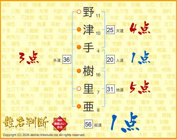 野津手樹里亜さんの外運は36画の3点!