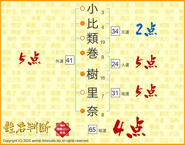 小比類巻樹里奈さんの外運は41画の5点!
